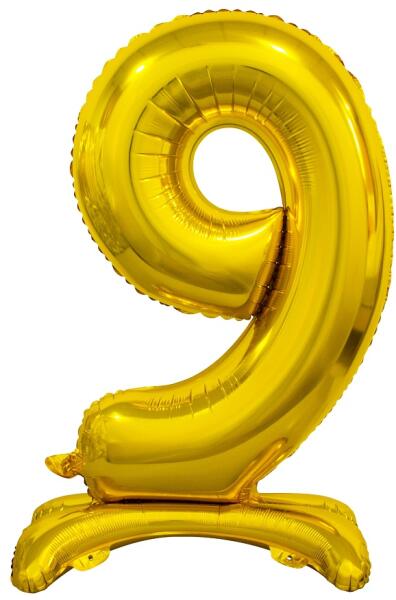 Talpas álló fólia lufi 9-es arany 74 cm mennyiség: 1 db méret: 74 cm alkalmas levegővel történő felfújásra Színesítse a születésnapi ünnepséget szám formájú talpas álló fólia lufival . Kiváló minőségű, nem légáteresztő anyagból készült. Az álló fólia lufi előnye, hogy egyedül is megáll, bárhová helyezi. Levegővel felfújva pár hónapig is megtartja vál