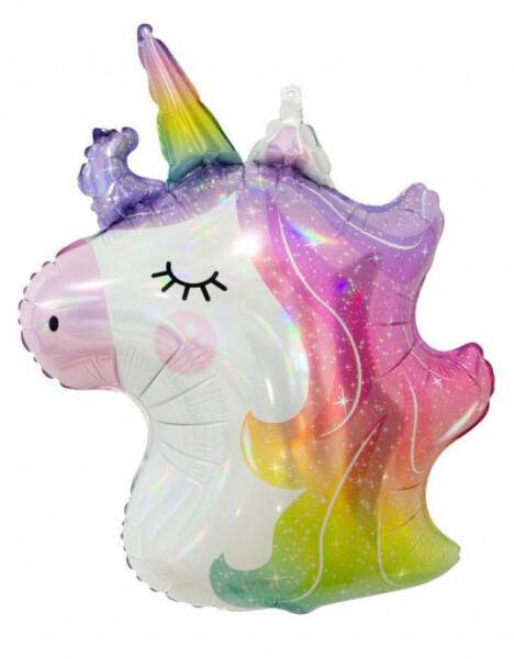 Unicorn, Unikornis fólia lufi 75 cm Fólia léggömb, mely héliummal vagy levegővel tölthető. A lufi önzárószeleppel van ellátva, amely megakadályozza a gáz elszökését. Mérete: 75 cm Anyaga: fólia A lufi tartó pálca + csésze külön megvásárolható áruházunkban.