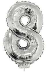 Dekorálj a születésnapi bulin ezüstszínű 8-as léggömbbel! A 8-as, ezüstszínű Számos lufi egy alumínium fóliából készült erős léggömb, ami egy nyolcas számot formáz meg. A lufi csillogó felületű, levegővel és héliummal is feltölthető, a lufival ki tudod írni a születésnapos életkorát a bulin. Az ezüst 8 Számos lufi felfújt mérete: 42 cm.