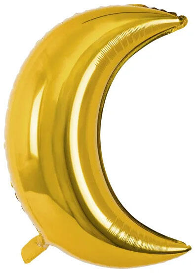 Holdalakú fólia lufi, arany, . 60 cm. Önzáró szeleppel ellátva, levegővel töltésre ajánlott. Egyesével csomagolva.