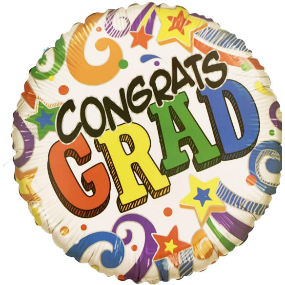 Fólia lufi, 18"/45cm, gömb alakú, ballagásra. Egyesével csomagolt. Tölthető levegővel vagy héliummal.