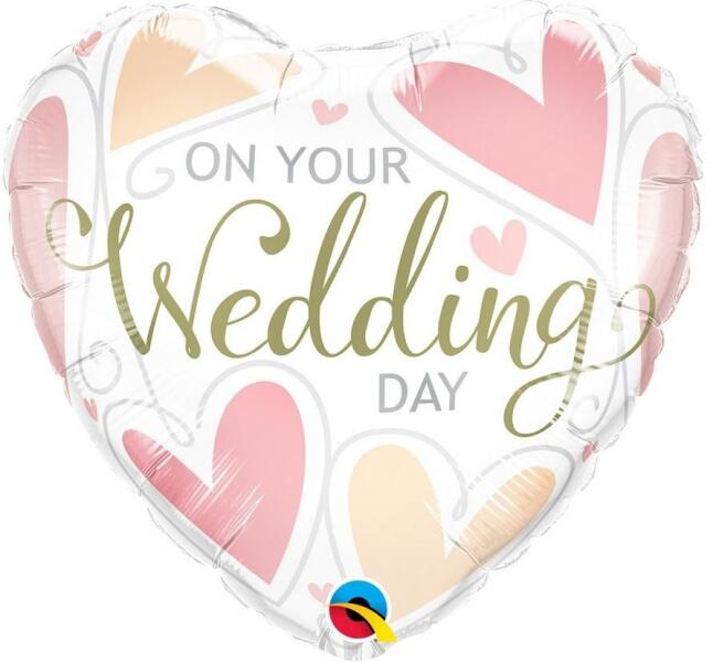 Wedding Day Hearts, Esküvő fólia lufi 46 cm Fólia léggömb, mely héliummal vagy levegővel tölthető. A lufi önzárószeleppel van ellátva, amely megakadályozza a gáz elszökését. Mérete 46 cm Anyaga: fólia A lufi tartó pálca + csésze külön megvásárolható áruházunkban.