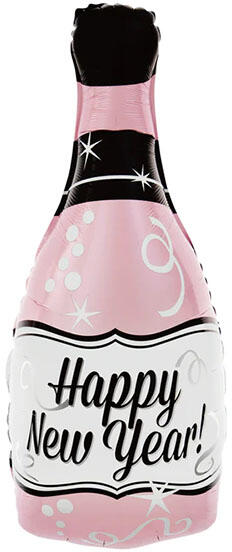 Szilveszteri - pezsgős üveg, rózsaszín, fólia Lufi. Tölthető levegővel vagy héliummal. Felfújás előtti méret kb. 49 x 100 cm (15,5 x 38,5).