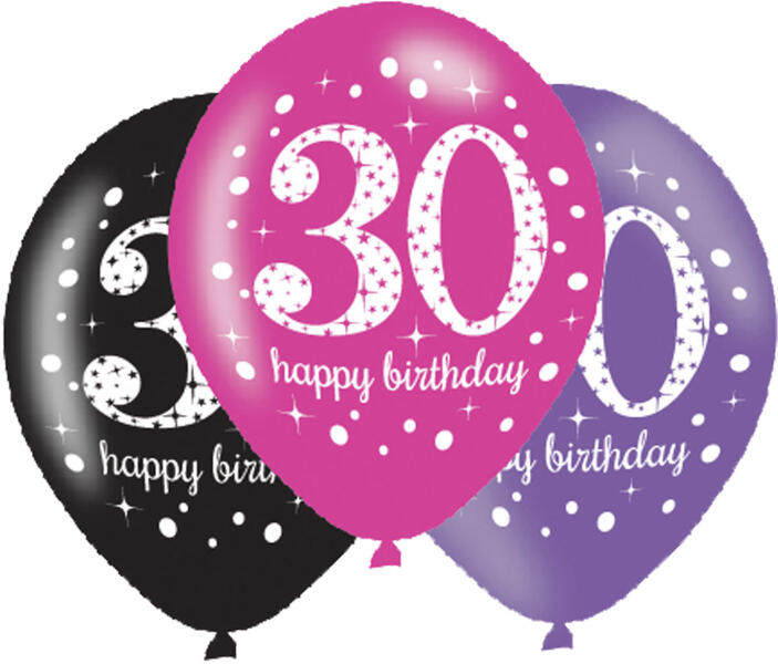 Születésnapi számos lufi 30 - rózsaszín party 6 db mennyiség: 6 db alkalmas levegővel és héliummal történő felfújásra is méret 27,5 cm 30-as számmal printelt, latex lufi . Alkalmas 30. születésnapi ünnepség díszítésére. A lufik kiváló minőségűek és levegővel vagy héliummal felfújhatóak.