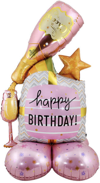 Ez a nagyméretű, álló „Happy Birthday fólia lufi tökéletes központi dekoráció bármilyen születésnapi ünnepségen! Méretének és stabil kialakításának köszönhetően könnyedén elhelyezhető a földön, így ideális fotóháttérként vagy látványos dekorációs elemként szolgál. A fényes fólia anyag elegáns és figyelemfelkeltő megjelenést biztosít, amely feldobja