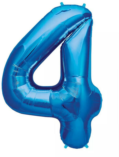 Kék színű, szám alakú óriás fólia lufi „4 számmal , mellyel pillanatok alatt feldobhatod a születésnapi dekorációt. Tulajdonságok: Anyaga: fólia A lufi mérete: 105 cm magas, 40 inch A lufi levegővel és héliummal is felfújható. A csomagban található kétoldalas ragasztó a rögzítéshez, illetve egy műanyag cső a lufik felfújásához.