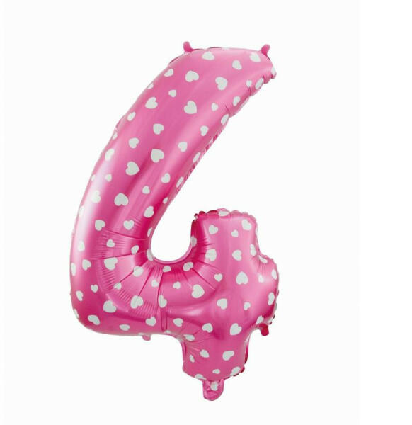 Pink with Hearts, Rózsaszín 4-es szám fólia lufi 61 cm Fólia léggömb, mely héliummal vagy levegővel tölthető. A lufi önzárószeleppel van ellátva, amely megakadályozza a gáz elszökését. Méret: 61 cm Anyaga: fólia A lufi tartó pálca + csésze külön megvásárolható áruházunkban ( KFJ_DPA9911929vagyKFJ_DPA9917359 ).