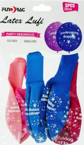 Lufi Boldog Szülinapot fordított 5db 30cm 602169 Lufi Boldog Szülinapot fordított 5db 30cmBefoglaló méretek 13x1x20 cmAnyaga gumi