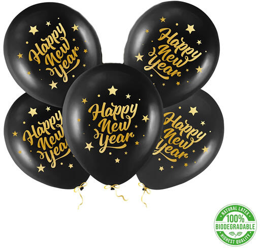 Happy New Year lufi, pasztel fekete, átmérő 30cm, egy csomagban 5 darab.