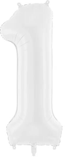 Fólia lufi, 86 cm, 1-es szám alakú, fehér. Héliummal vagy levegővel fújható, önzáró szelepes. Egyedi eurófüles csomagolásban.