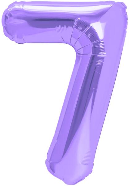 7. szám, fólia lufi, 100 cm magas, egyesével csomagolva. Héliummal vagy levegővel tölthető. Beépített záró szelepes.
