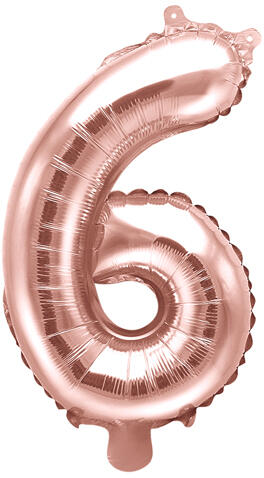 6-os szám mini fólia lufi - rózsaszín arany 35cm mennyiség: 1 db méret: 35 cm héliummal történő felfújásra NEM alkalmas A mini szám fólia lufik kiváló dekorációi minden partynak va gy születésnapi ünnepségnek. Alakítson ki egyedi és különleges party dekorációt . Ezek a fólia lufik nem alkalmasak héliummal történő felfújásra, mégis különleges hangulatot teremte