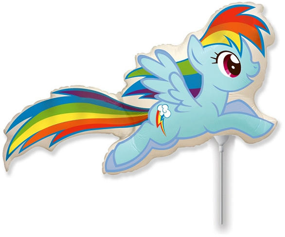 Fólia lufi, 14"/36cm, szivárványos póni, pálcára tehető. Önzáró szelep nélkül, csak levegővel tölthető. Ömlesztett formában, nincs egyesével csomagolva.