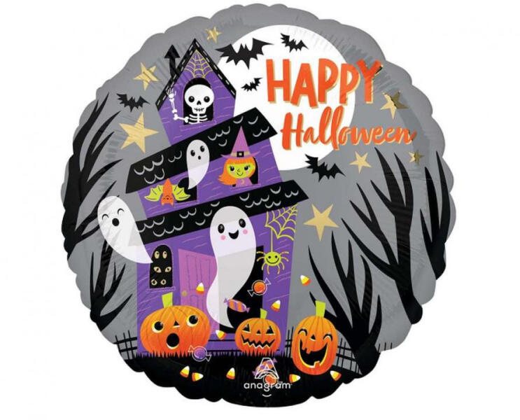 Happy Halloween Haunted House fólia lufi Mérete 46 cm Anyaga: fólia A lufi tartó pálca + csésze külön megvásárolható áruházunkban.