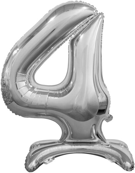 Talpas álló fólia lufi 4-es ezüst 74 cm mennyiség: 1 db méret: 74 cm alkalmas levegővel történő felfújásra Színesítse a születésnapi ünnepséget szám formájú talpas álló fólia lufival . Kiváló minőségű, nem légáteresztő anyagból készült. Az álló fólia lufi előnye, hogy egyedül is megáll, bárhová helyezi. Levegővel felfújva pár hónapig is megtartja vá