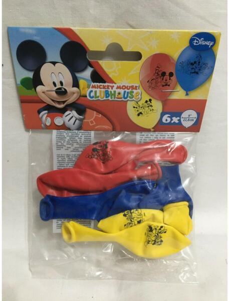 Piros, kék és sárga alapú, mindkét oldalán Mickey egér és barátai mintás latex lufi. A léggömbök mérete felfújt állapotban 27,5 cm átmérőjű. Héliummal és levegővel is felfújhatóak. Az ár 1 csomag lufira vonatkozik. Egy csomag 6 db Mickey egér és barátai mintás lufit tartalmaz.