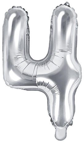 4-es szám mini fólia lufi - ezüst 35cm mennyiség: 1 db méret: 35 cm héliummal történő felfújásra NEM alkalmas A mini szám fólia lufik kiváló dekorációi minden partynak va gy születésnapi ünnepségnek. Alakítson ki egyedi és különleges party dekorációt . Ezek a fólia lufik nem alkalmasak héliummal történő felfújásra, mégis különleges hangulatot teremtenek. Fotós