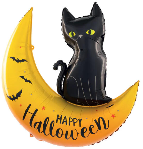 Halloween Fólia Lufi – Holdon Ülő Fekete Macska Ez a lenyűgöző fólia lufi a tökéletes dekoráció minden Halloween bulihoz. A lufin egy misztikus hangulatot árasztó fekete macska látható, amint a holdon ül, alatta pedig a "Happy Halloween" felirat olvasható. A lufi impozáns mérete (76,5 cm x 88 cm) garantáltan magára vonzza a figyelmet, legyen az bármilyen helyiségben elhely