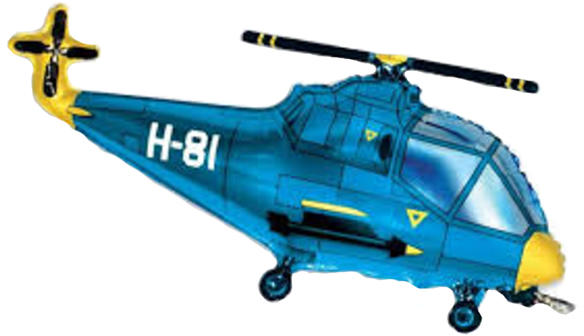 Helikopter, kék, 98cmHéliummal fújható, önzáró szelepes.