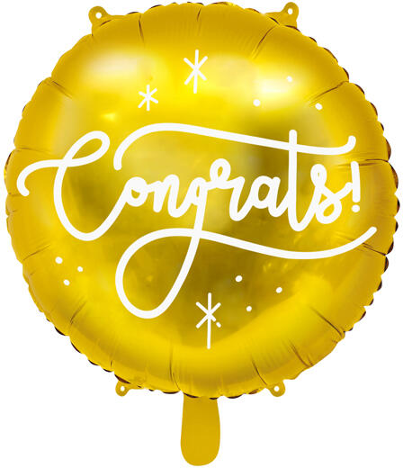Fólia lufi Gratulálok/Congrats - arany Fólia lufik egyedi és esztétikus kiegészítője minden pártynak vagy társadalmi eseménynek . Készítsen lufi díszítést a szülinap napján és varázsoljon egy feledhetetlen napot az ünnepeltnek és vendégeinek. alkalmas levegővel vagy héliummal történő felfújásra darab : 1 drb méret :35 cm