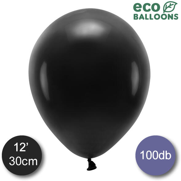Fekete latex lufi, átmérő 30 centiméter, héliummal vagy levegővel tölthető. Egy csomagban 100 darab lufi. Héliummal töltve 10-15 órát lebegnek szoba hőmérsékleten, a lebegési idő növelhető (3-5 nap) zselé hozzáadásával.