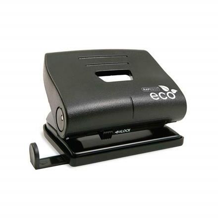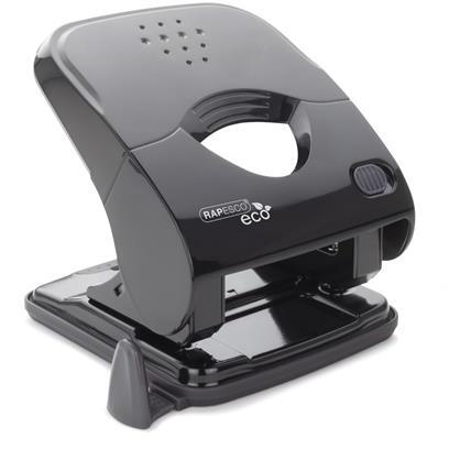 Lyukasztó, kétlyukú, 22 lap, RAPESCO "ECO", fekete - IR1086 - Asztali lyukasztók 30 lapig - Praktikus kiegészítője minden asztalnak! -kétlyukú kézi tűzőgép -műanyag, borítás, fém szerkezet -újrahasznosított műanyagból készült fogantyú -könnyen üríthető ko