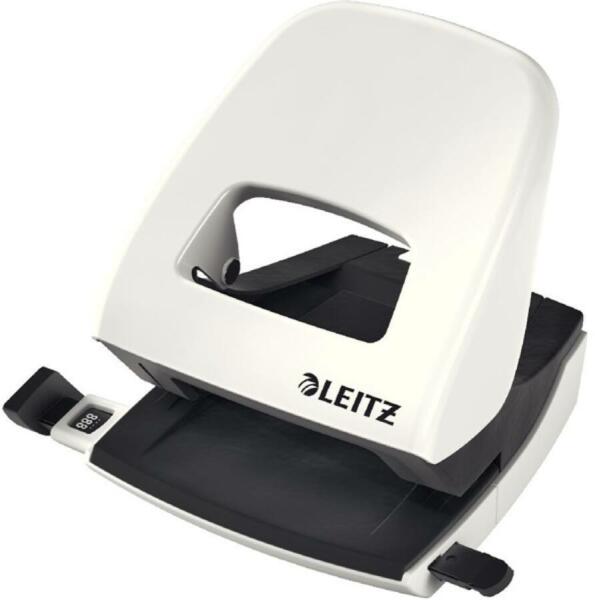 Lyukasztó, kétlyukú, 30 lap, fém, LEITZ Nexxt Style, szaténfekete (E50060094) - egyedi megjelenésű, megbízható teljesítményű lyukasztó mindennapos használatra modern, fémes felülettel és kifinomult színekben - a szabadalommal védett markolatnak és éles lyukasztóegységnek köszönhetően a lyukasztás kisebb erőkifejtést igényel - erős távtartó és jól látható méret