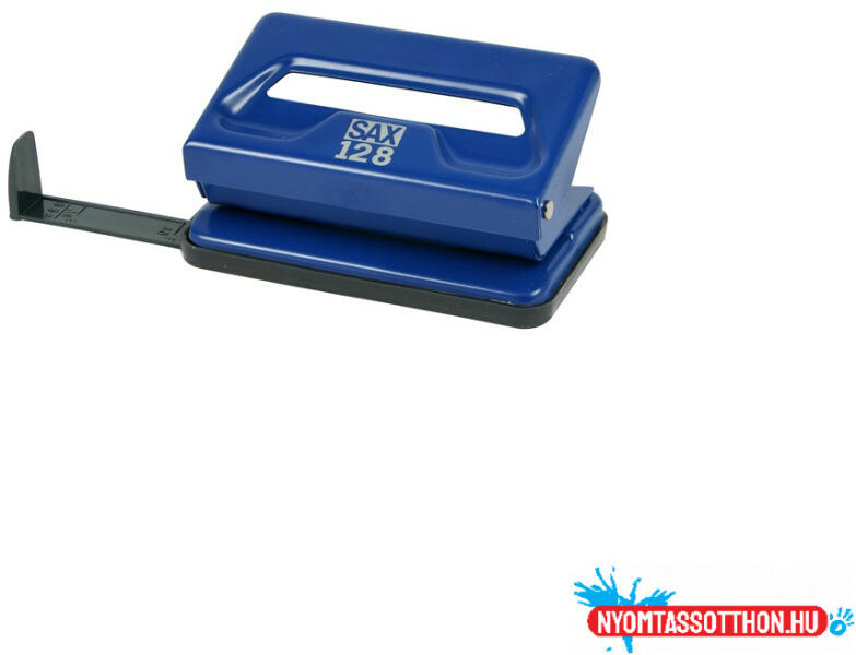 Lyukasztó 12lap Sax 128 kék Könnyűfém testű, fémszerkezetű lyukasztógép, ütköztetőléccel. Egyszerre lyukaszthatólapok száma: max. 12 lap. Lyuktávolság: 80 mm. Lyukátmérő: 5,5 mm.