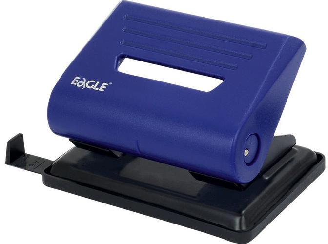 Irodai, asztali lyukasztó, távtartóval, papírhulladék tartóval rendelkezik. Műanyag test, fém szerkezet, lyukasztási kapacitás: 25 lap, lyukátmérő: 5,5 mm, lyuktávolság: 80 mm. 3 év garancia.