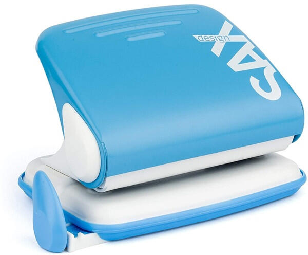 Sax Design világoskék lyukasztógép Könnyűfém testű, fém szerkezetű Lyukasztógép ütköztető léccel. Egyszerre lyukasztható lapok száma max. : 20 lap. Lyuktávolság: 80mm. Lyukátmérő: 5,5mm. Keresse a színben hozzáillő SAX Design Fűzőgépeket is!