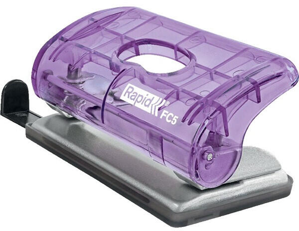 Irodai, asztali, színes fémvázas lyukasztó, távtartóval, papírhulladék tartóval ellátva, 65 lap lyukasztási kapacitással. 25%-kal kevesebb erőkifejtés szükséges a lapok átlyukasztásához.
