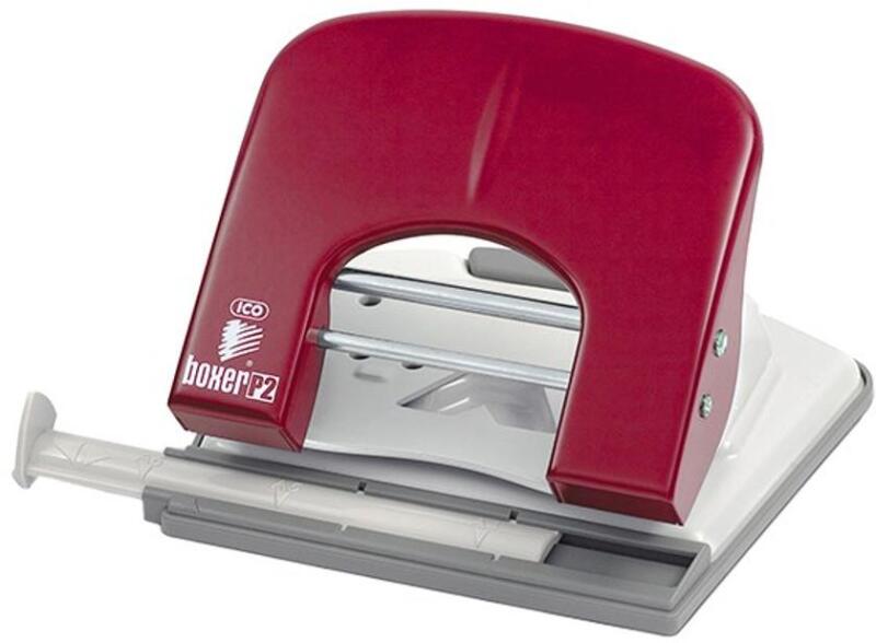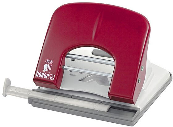 Lyukasztó BOXER P2 2 lyukú fém 30 lap piros Irodai, asztali, színes fémvázas lyukasztó, távtartóval, papírhulladék tartóval ellátva, 30 lap lyukasztási kapacitással.