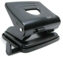 Lyukasztó, kétlyukú, 25 lap, fém, RAPESCO "825", fekete Praktikus kiegészítője minden asztalnak! -kézi kétlyukú lyukasztó -fém borítás, fém szerkezet -könnyen üríthető konfetti tartály -feliratozható névtábla -lyuktávolság: 80 mm -könnyített lyukasztás: nem -zárszerkezet: igen -méret: 108 mm × 98 mm × 56 mm (összecsukva) 78 mm (nyitva) -garancia: 15 év