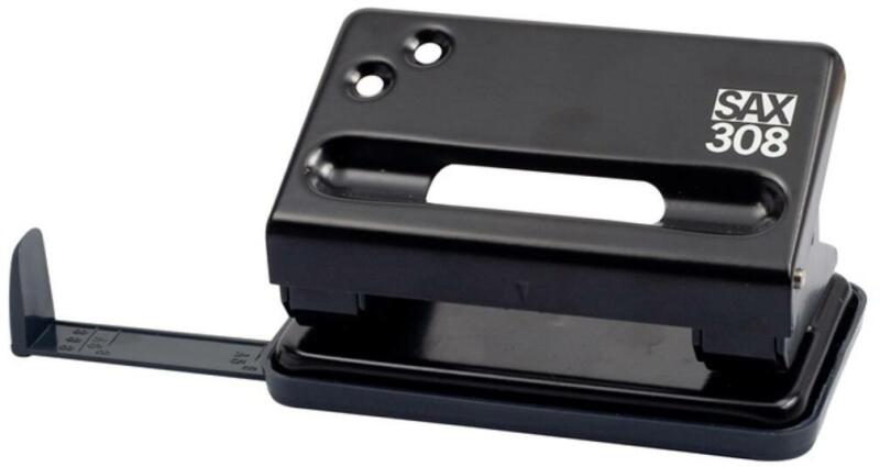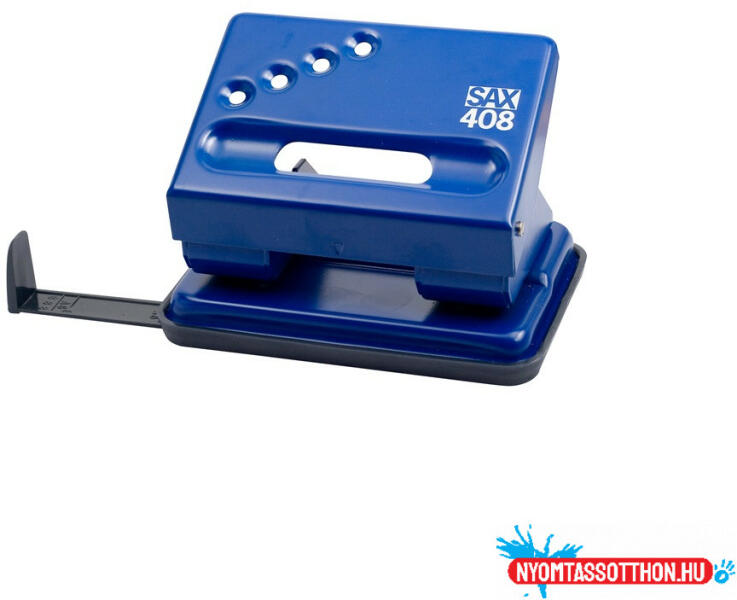 Lyukasztó 30lap Sax 408 kék Könnyűfém testű, fémszerkezetű lyukasztógép, ütköztetőléccel. Egyszerre lyukasztható lapok száma: max. 30 lap. Lyuktávolság: 80 mm. Lyukátmérő: 5,5 mm.
