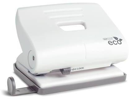 Lyukasztó, kétlyukú, 22 lap, RAPESCO ECO, fehér (IR1522) Praktikus kiegészítője minden asztalnak -kétlyukú kézi tűzőgép -műanyag, borítás, fém szerkezet -újrahasznosított műanyagból készült fogantyú -könnyen üríthető konfetti tartály -lyuktávolság: 80 mm -könnyített lyukasztás: nem -zárszerkezet: igen -méret: 102 mm x 83 mm x 45 mm (összecsukva) 68 mm (nyitva)