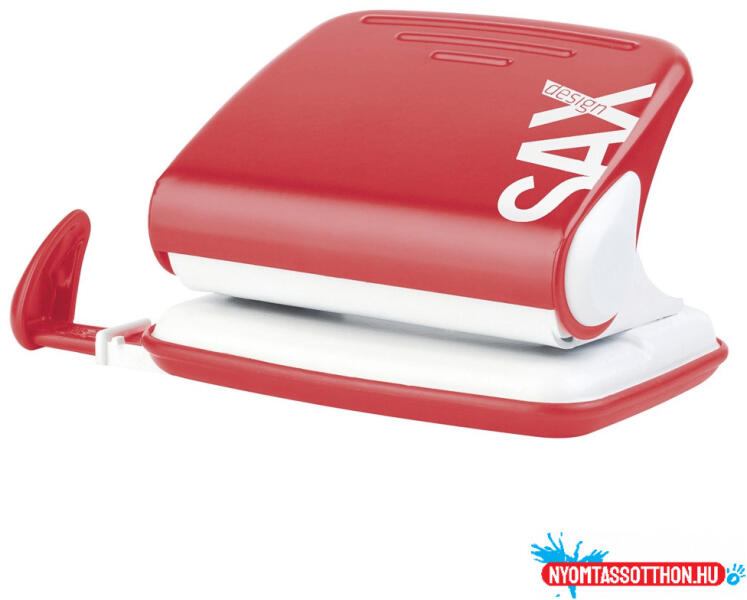 Lyukasztó 20lap Sax design 318 piros Könnyűfém test, fém szerkezet, ütköztetőléc. Egyszerre lyukasztható lapok száma: max. 20 lap. Lyuktávolság: 80 mm. Lyukátmérő: 5,5 mm.