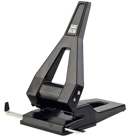 Lyukasztó, nagyteljesítményű, kétlyukú, 65 lap, SAX 608, fekete (ISA608FK) - könnyűfém test - karos lyukasztó - fém távtartó - a lyukasztóbélyeg mechanikájának köszönhetően 25% -kal kevesebb erőkifejtés szükséges a lapok átlyukasztásához - lyuktávolság: 80 mm - lyukátmérő: 5,5 mm - lyukasztási kapacitás: 65 lap - életre szóló garancia Gyártó/első EU forgalma