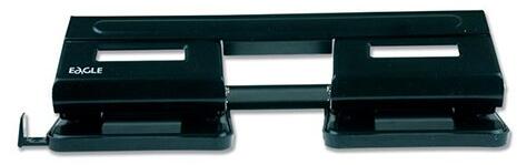 Irodai, asztali lyukasztó, távtartóval, papírhulladék tartóval rendelkezik. Műanyag test, fém szerkezet, lyukasztási kapacitás: 15 lap, lyukátmérő: 5,5 mm, lyuktávolság: 80-240 mm. 3 év garancia.