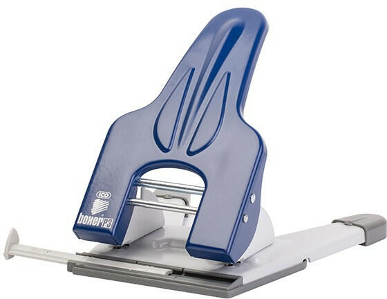 Lyukasztó BOXER P3 2 lyukú fém 45 lap kék Irodai, karos, nagyteljesítményű, színes fémvázas lyukasztó, távtartóval, papírhulladék tartóval ellátva, 45 lap lyukasztási kapacitással.