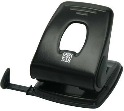 Lyukasztó, kétlyukú, 40 lap, SAX "518", fekete - könnyűfém test, - fém szerkezet - távtartó - lyukátmérő: 5,5 mm - lyukasztási kapacitás: 40 lap - életre szóló garancia