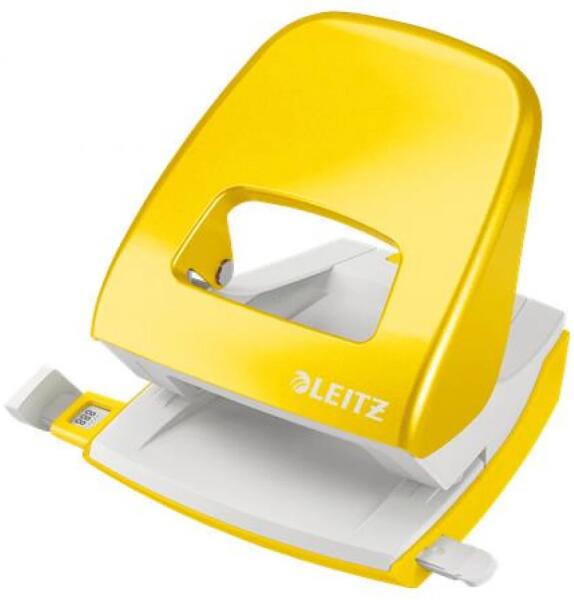 Lyukasztó, kétlyukú, 30 lap, LEITZ "Nexxt Wow", sárga - trendi színű, megbízható teljesítményű lyukasztó mindennapos használatra - a szabadalommal védett markolatnak és éles lyukasztóegységnek köszönhetően a lyukasztás kisebb erőkifejtést igényel - max. lyukasztási kapacitás: 30 lap (80 g-os) - a markolatnak és élesebb lyukasztóegységnek köszönhetően a lyukasztás