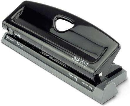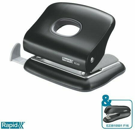 Lyukasztó, kétlyukú, 20 lap, RAPID FC20, fekete (E23256400) - erős, fém lyukasztó megerősített, ABS műanyagból készült karral és talppal - otthoni, iskolai és irodai használatra - az erős, fém konstrukció tökéletes lyukasztást eredményez - könnyen üríthető, műanyag tartály - távtartóval - kapacitás: 20 lap (80 g-os) - lyukátmérő: 5,5 mm - lyuktávolság: 8 cm fix