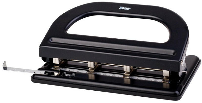 Erőteljes, teljesen fémből készült irodai lyukasztó műanyag borítással, csúszó vonalzóval és alsó helyzetű reteszeléssel. B 4 FC és B 7 automata tűzőgépekhez megfelelő tartozék. Lyuk fesztáv 8 cm. Lyukasztási kapacitás 30 lap. 10 év garancia.