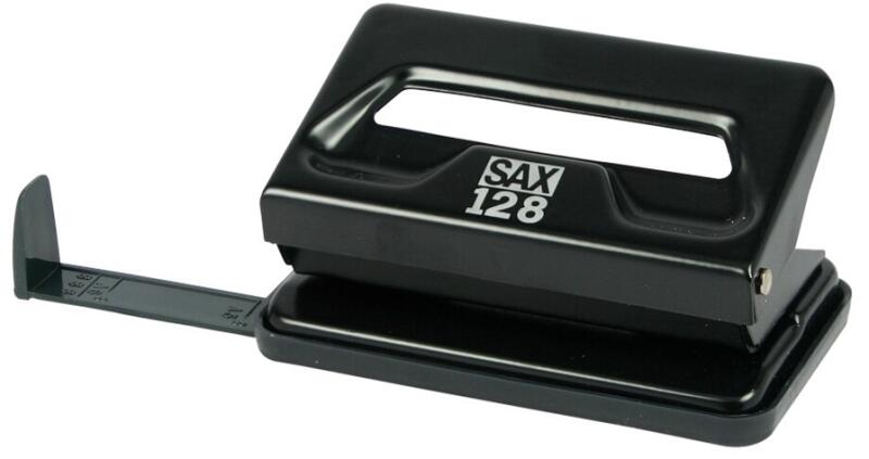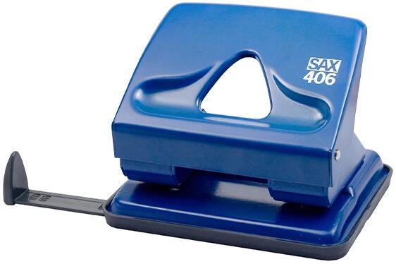 Lyukasztó SAX 608 2 lyukú fém 65 lap kék Nagyteljesítményű karos lyukasztógép, fém ütköztetőléccel. 25%-kal kevesebb erőkifejtés szükséges a lapok átlyukasztásához. Lyukasztó kapacitás: max. 63 lap. Lyuktávolság: 80 mm. Lyukátmérő: 5,5 mm.