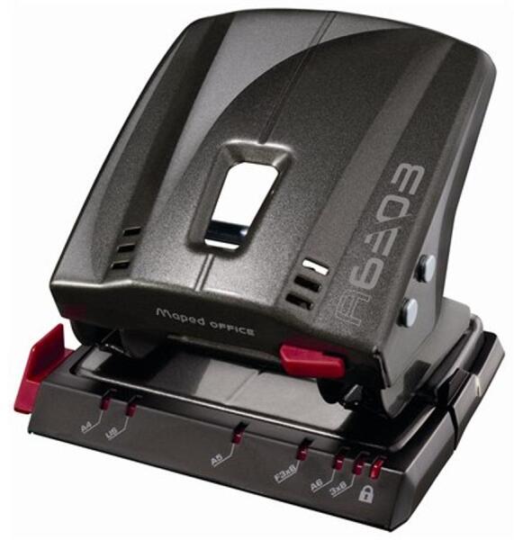 fémtest, matt bevonat kidolgozottság és letisztult dizájn kombinációja távtartó bemélyedés a konfettitartó tálcán a gyűrűskönyvek és emelőkaros iratrendezők fémszerkezetének odaillesztéséhez, a dokumentumok pontos helyen történő lyukasztásához lyukátmérő: 5,5 mm 10 év garancia
