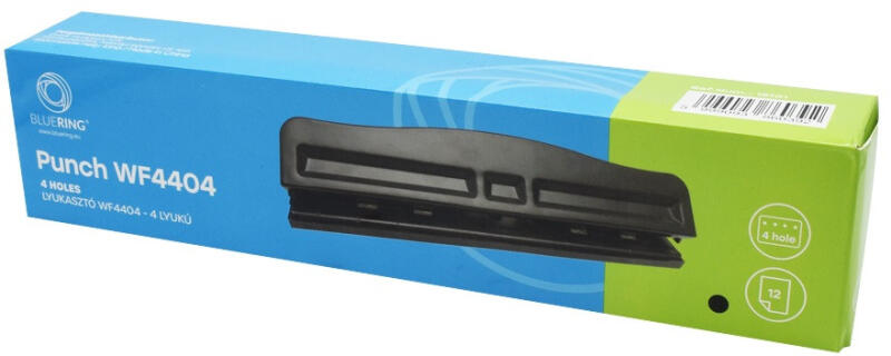 4 lyuk egyidejű lyukasztására alkalmas lyukasztógép. Könnyűfém test, fémszerkezet, ütköztetőléc, Egyszerre lyukasztható lapok száma: 12 lap. Katalóguskód: 18101 LYUKASZTÓ NÉGYLYUKÚ 12LAP FEKETE FÉM WF4404 Gyártó : Egyéb