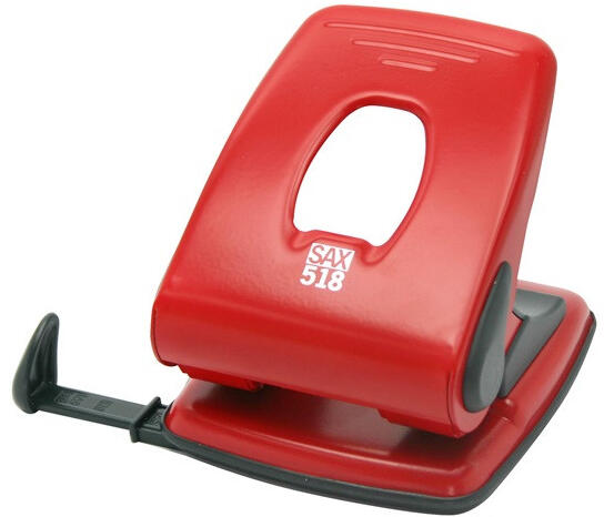 LYUKASZTÓ KÉTLYUKÚ 40LAP PIROS SAX 518 Könnyűfém test, fém szerkezet, ütköztetőléc. Egyszerre lyukasztható lapok száma: max. 40 lap. Lyuktávolság: 80 mm. Lyukátmérő: 5,5 mm. Katalóguskód: 13609