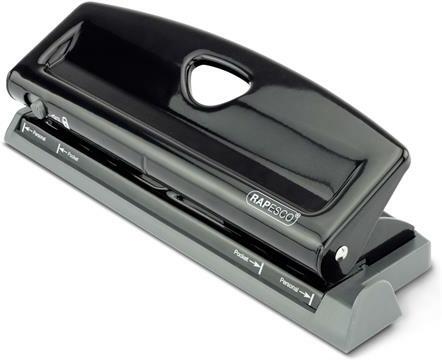 Jó minőségű asztali lyukasztó RAPID FC20 fém test és állítható távtartó, lyukasztási kapacitás 20 lap. Lyukasztási távolság: 80 mm Lyuk átmérő: 5,5 mm