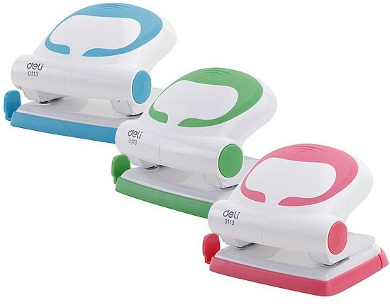 Lyukasztó, kétlyukú, 20 lap, műanyag, DELI Vivid, vegyes színben