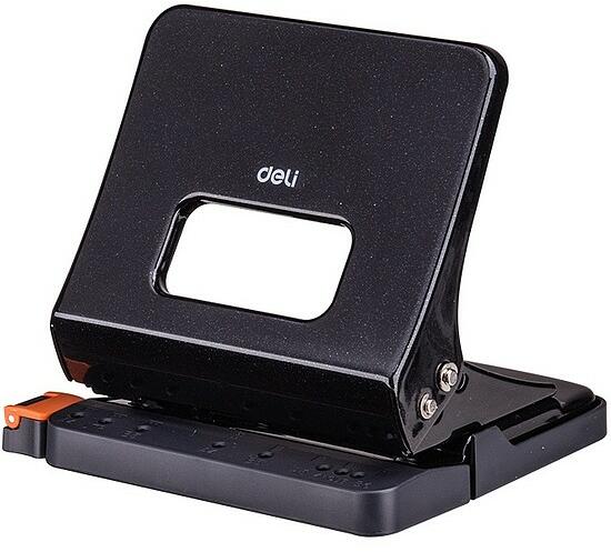 Lyukasztó, kétlyukú, könnyített mechanika, 25 lap, fém, DELI Expert, fekete